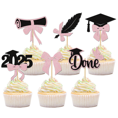 2025การ์ดคัพเค้กสำหรับจบการศึกษาเด็กผู้หญิงที่จบการศึกษาพร้อมโบว์และประกาศนียบัตรหมวกแพทย์ใช้สำหรับงานปาร์ตี้